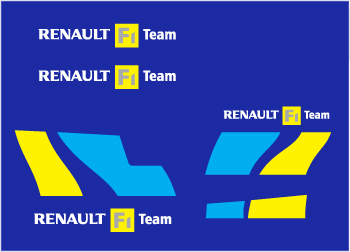 - 1 x light blue/yellow rear bumper 225 decal with white renault F1 Team logo.