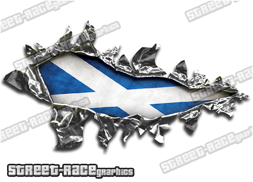 A digitally printed ripped torn metal effect vinyl sticker from street-race graphics. These graphics are printed using a high specification vinyl inkjet printer, using long-life inks and outdoor-use top quality vinyl. The sticker is contour cut, so you just peel and stick.