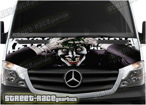 Joker digitally printed vinyl bonnet / hood wrap. There are no gaps or clear areas in this bonnet graphic, so it can be fitted to any colour van.