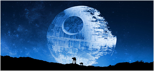 Star Wars Death Star digitally printed vinyl bonnet / hood wrap. There are no gaps or clear areas in this bonnet graphic, so this graphic can be fitted to any colour van.