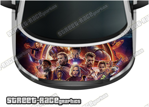 Avengers digitally printed vinyl bonnet / hood wrap. There are no gaps or clear areas in this bonnet graphic, so this graphic can be fitted to any colour van.