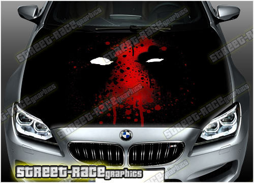 Digitally printed vinyl bonnet / hood wrap. There are no gaps or clear areas in this bonnet graphic, so this decal can be fitted to any colour car.