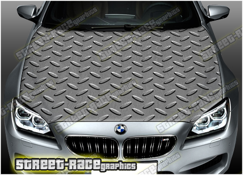 Digitally printed vinyl bonnet / hood metal texture pattern wrap. There are no gaps or clear areas in this bonnet graphic, so this graphic can be fitted to any colour car.
