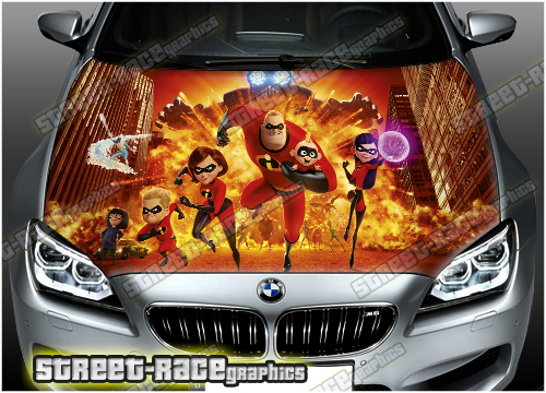 Digitally printed vinyl bonnet / hood wrap. There are no gaps or clear areas in this bonnet graphic, so this decal can be fitted to any colour car.