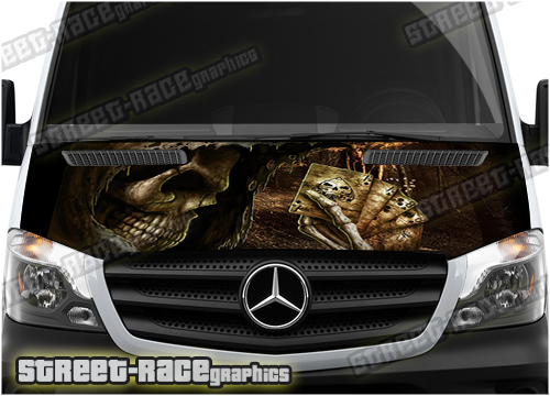 Grim Reaper digitally printed vinyl bonnet / hood wrap. There are no gaps or clear areas in this bonnet graphic, so it can be fitted to any colour van.