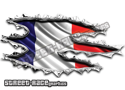 A digitally printed ripped torn metal effect vinyl sticker from street-race graphics. These graphics are printed using a high specification vinyl inkjet printer, using long-life inks and outdoor-use top quality vinyl. The sticker is then laminated and contour cut around the perimeter of the jagged metal effect.