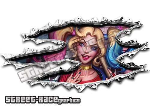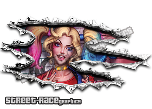 A digitally printed ripped torn metal effect vinyl sticker from street-race graphics. These graphics are printed using a high specification vinyl inkjet printer, using long-life inks and outdoor-use top quality vinyl. The sticker is then laminated and contour cut around the perimeter of the jagged metal effect.