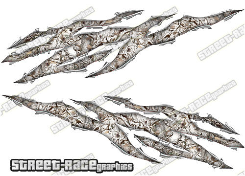 A digitally printed ripped torn metal effect vinyl sticker from street-race graphics. These graphics are printed using a high specification vinyl inkjet printer, using long-life inks and outdoor-use top quality vinyl. The sticker is then laminated and contour cut around the perimeter of the jagged metal effect.
