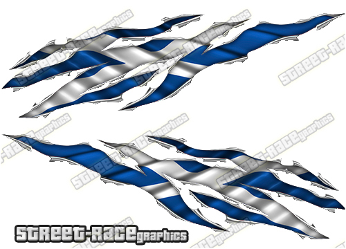 A digitally printed ripped torn metal effect vinyl sticker from street-race graphics. These graphics are printed using a high specification vinyl inkjet printer, using long-life inks and outdoor-use top quality vinyl. The sticker is then laminated and contour cut around the perimeter of the jagged metal effect.