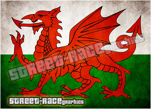 Digitally printed vinyl bonnet / hood Welsh Flag wrap. There are no gaps or clear areas in this bonnet graphic, so this graphic can be fitted to any colour car.
