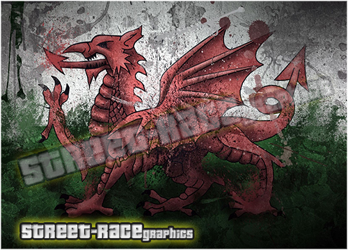 Digitally printed vinyl bonnet / hood Welsh Flag wrap. There are no gaps or clear areas in this bonnet graphic, so this graphic can be fitted to any colour car.