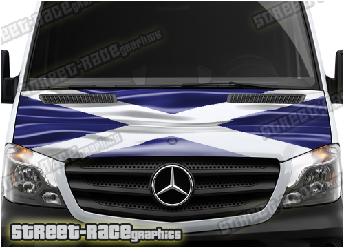 Scotland flag digitally printed vinyl bonnet / hood wrap. There are no gaps or clear areas in this bonnet graphic, so it can be fitted to any colour van.