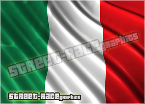 Digitally printed vinyl bonnet / hood wavy Italian flag wrap. There are no gaps or clear areas in this bonnet graphic, so this graphic can be fitted to any colour car.