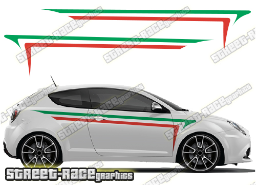 Alfa Romeo MiTo Italian flag racing stripe decals, to suit all Alfa Romeo MiTo cars.