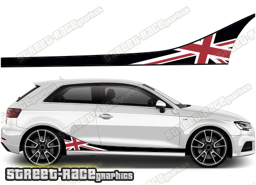 Audi A3 Union Jack Flag style lower side racing stripe digitally printed graphics. There are no gaps or clear areas in these stripes.
