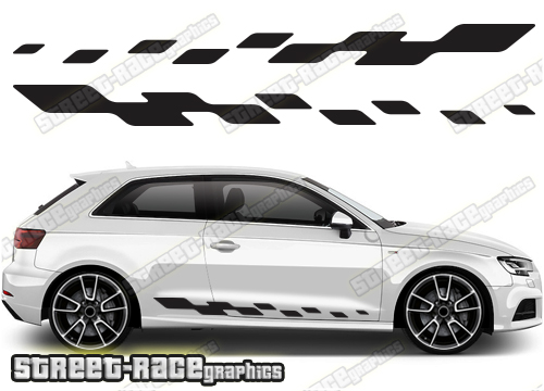 Audi A3 racing stripe stickers; decals will suit all Audi A3 cars with minor trimming around wheel arches and door shuts.