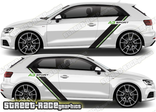 Audi A3 rally side stripe sticker kit from street race graphics. Trimming is required around wheel arches.