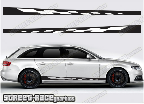 Audi A4 racing stripe stickers; decals will suit all Audi A4 cars with minor trimming around wheel arches and door shuts.