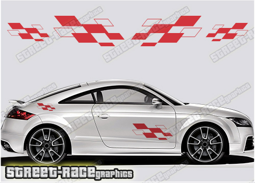- 2 x side graphics, in 2 pieces for each side of the car.
