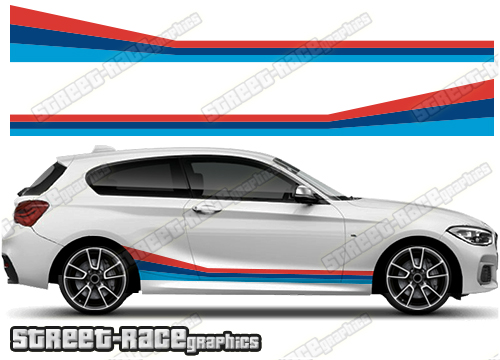 • 2 x BMW 1 series side racing stripes, one for each side of the car.