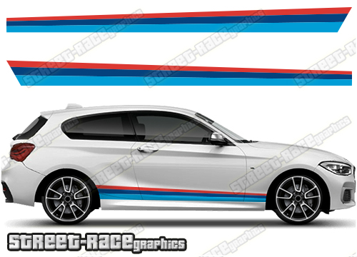 • 2 x BMW 1 series side racing stripes, one for each side of the car.