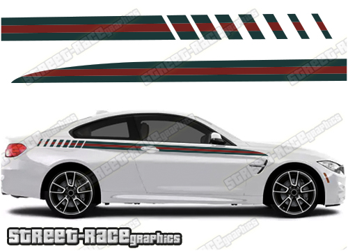 BMW 3 series GUCCI style lower side racing stripe stickers. They will fit all BMW 3 series cars and facelift variants.