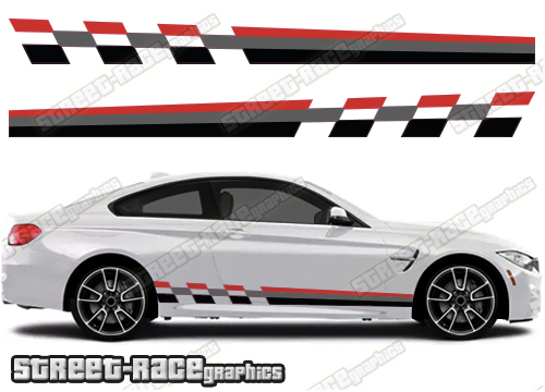 - 2 x BMW 3 series side racing stripes, one for each side of the car.