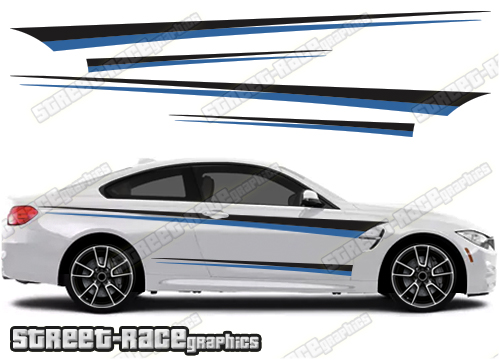 - 2 x side racing stripe graphics, in 4 pieces for each side of the car.
