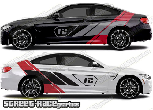 - 2 x side graphics, in 3 pieces for each side of the car.
