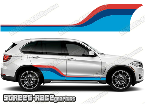 • 2 x BMW X5 side racing stripes, one for each side of the car.