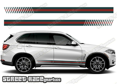 BMW X5 GUCCI style lower side racing stripe stickers. They will fit all BMW X5 cars and facelift variants.