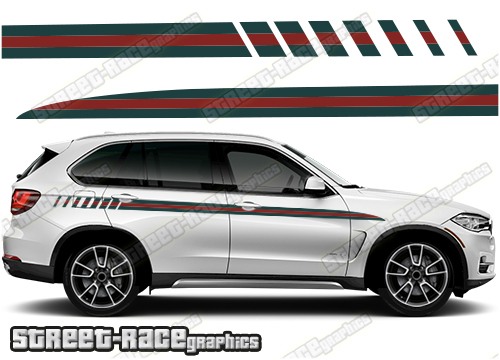 BMW X5 GUCCI style lower side racing stripe stickers. They will fit all BMW X5 cars and facelift variants.