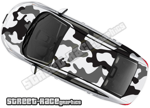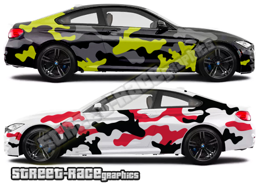 2-colour Camouflage cut-vinyl graphics, to suit all medium to large sized cars. This kit is shown on a BMW M4, but will fit all similar-sized cars.