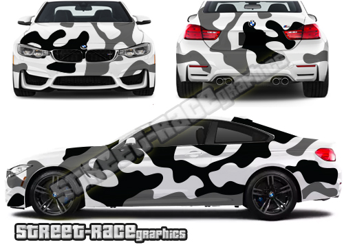 2-colour Camouflage cut-vinyl graphics, to suit all medium to large sized cars. This kit is shown on a BMW M4, but will fit all similar-sized cars.