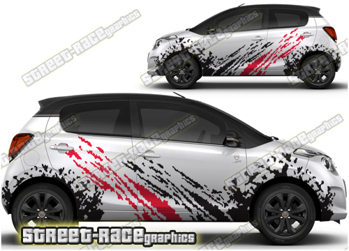 Citroen C1 graphics. These large race-inspired decals are perfect for both street, rally and track-day cars. They are a universal fit to suit all Citroen C1 cars and facelift variants from MK1 onwards. There are no cutouts for the door handles, wheel arches or door lines; these will require trimming during fitting.
