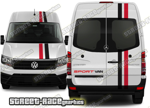 - 1 x rear stripe – long enough to fit the full height of the rear of the van (with or without the window).