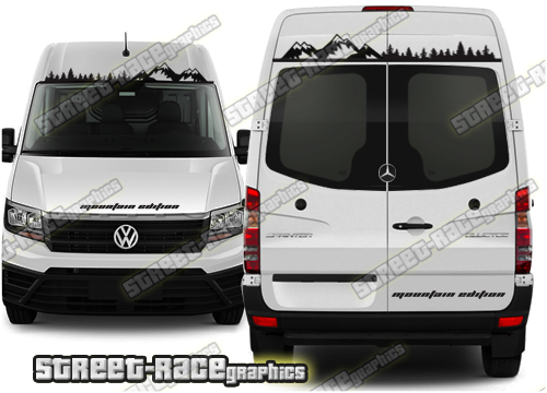 Campervan / Motorhome graphics kits. These are ideal for giving your existing camper a new look or to finish off a new camper conversion project. They are sized to fit the Mercedes Sprinter and VW Crafter (all years and variants).