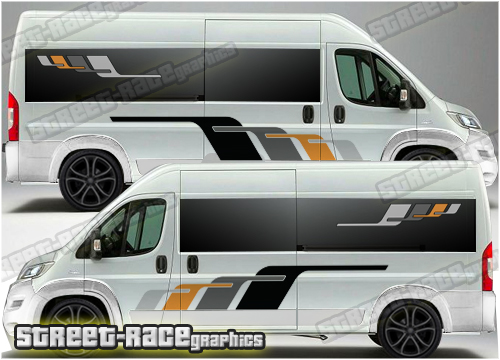 - 2 x large side graphics, for both sides of the van (8 pieces for each side).