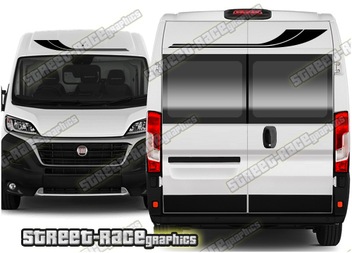 Campervan / Motorhome graphics kits. These are ideal for giving your existing camper a new look or to finish off a new camper conversion project. They are sized to fit the Peugeot Boxer, Citroen Relay and the Fiat Ducato. These complement the graphics listed in the ‘side graphics’ category.