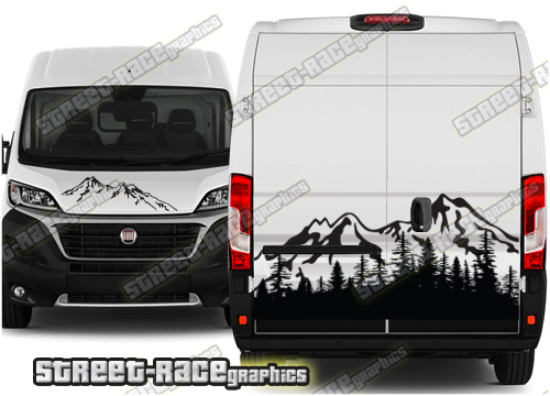 Campervan / Motorhome graphics kits. These are ideal for giving your existing camper a new look or to finish off a new camper conversion project. They are sized to fit the Peugeot Boxer, Citroen Relay and the Fiat Ducato. These complement the graphics listed in the ‘side graphics’ category.