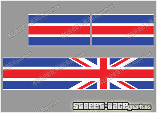 Fiat 500 Union Jack ‘over the top’ OTT racing stripe graphic, digitally printed. There are no gaps or clear areas in this stripe, so this graphic can be fitted to any colour car and will still appear red, white and dark blue. There is a thin white border around the stripes.