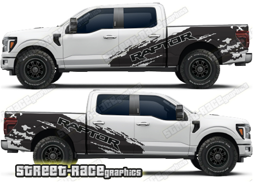 Ford F-150 side graphics. They are shown on the 14th generation dual cab F-150 XLT, but they can be trimmed to fit all cab versions (single, crew and double cab) and facelift variants. The graphics will also fit other F-Series trucks (F-250 & F-350) and earlier versions (12th & 13th gen).