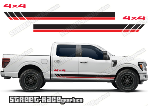 Ford F-150 side graphics. They are shown on the 14th generation dual cab F-150 XLT, but they can be trimmed to fit all cab versions (single, crew and double cab) and facelift variants. The graphics will also fit other F-Series trucks (F-250 & F-350) and earlier versions (12th & 13th gen).