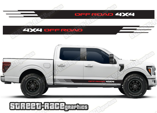 Ford F-150 side graphics. They are shown on the 14th generation dual cab F-150 XLT, but they can be trimmed to fit all cab versions (single, crew and double cab) and facelift variants. The graphics will also fit other F-Series trucks (F-250 & F-350) and earlier versions (12th & 13th gen).