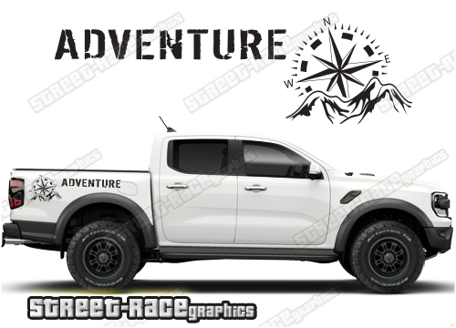 Ford Ranger side graphics. They are shown on the 4th generation dual cab, but they can be trimmed to fit all cab versions (single, crew and double cab) and facelift variants. Vinyl will not stick to textured surfaces such as unpainted wheel arch flares or raptor paint.