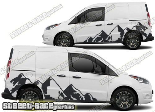 Ford Transit Connect graphics sticker kit from street race graphics. This will fit all versions of the Transit Connect that do not have the black side trim (vinyl will not stick to black textured plastics).