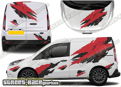 Ford Transit Connect Rally Raid mud splatter sticker kit from street race graphics. This will fit all versions of the Transit Connect that do not have the black side trim (vinyl will not stick to black textured plastics). Trimming is required around wheel arches.