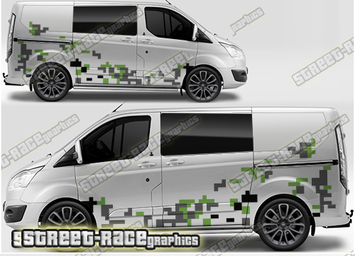 Ford Transit Custom large side camouflage graphics. These will fit all Ford Transit Custom vans.