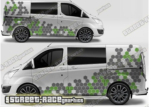 Ford Transit Custom large Hexagon / Honeycomb graphics. We can make these to fit both the SWB and LWB Ford Transit Custom vans.