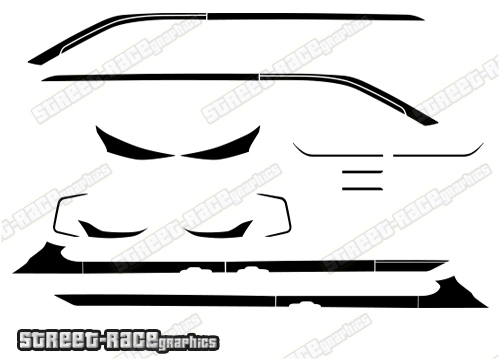 - 1 x set of front bumper graphics – shaped around the light and the air-vents.